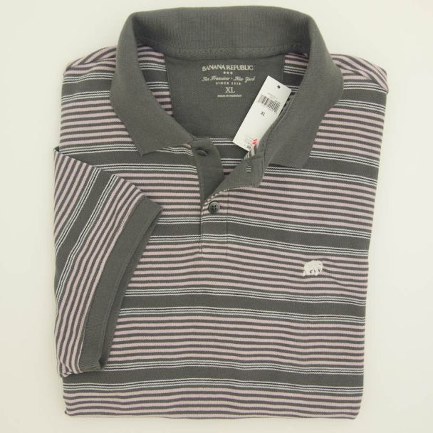 NEW Banana Republic Signature Striped Pique Polo Shirt Grey Men's XL